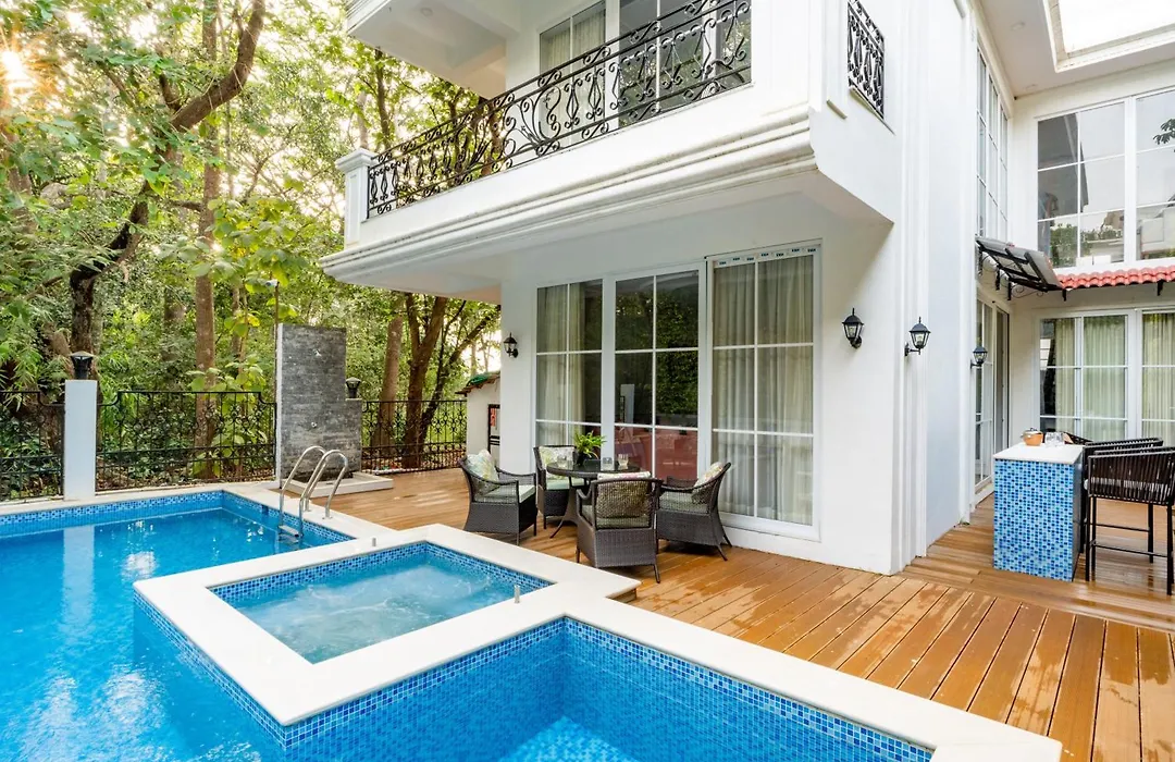 Located just 6 minutes' walk from St. Cajetan Catholic Church, the 4-bedroom Elivaas Prive Suntuarios Casa Ikkebana 4 Bhk With Jacuzzi, Pvt Pool & Bar Villa Marna offers quick access to various city attractions in the vicinity.